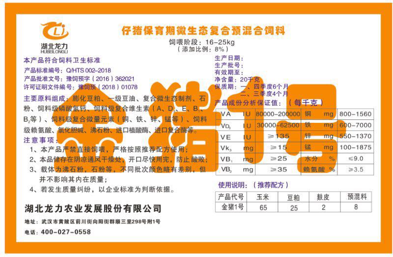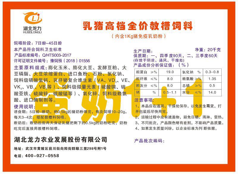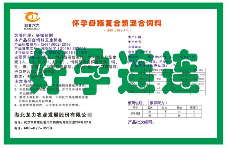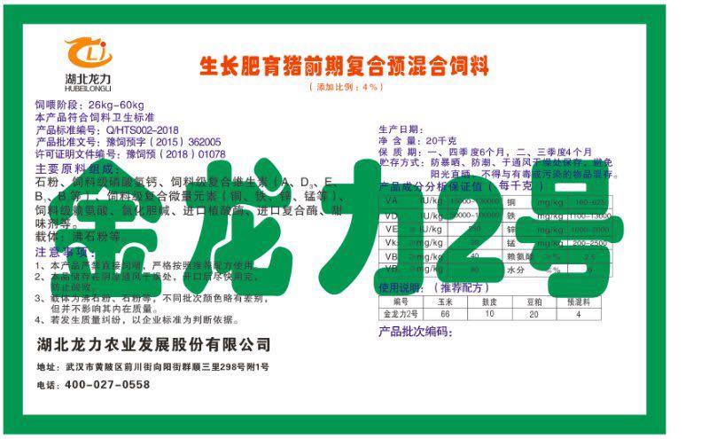 湖北龍力農(nóng)業(yè)發(fā)展股份有限公司坐落于武漢市黃陂區(qū)前川街向陽街群順三里298號附1號。公司成立于2014年6月,公司自成立以來把“創(chuàng)全球最大養(yǎng)豬綜合服務(wù)”為企業(yè)愿景。致力于打造教保料品牌”作為公司發(fā)展的明確目標(biāo)。公司一直致力于豬營養(yǎng)的研究和開發(fā),積極與國內(nèi)外高校和科研機(jī)構(gòu)合作,推廣養(yǎng)豬技術(shù)、動(dòng)物營養(yǎng)新概念,向世界農(nóng)牧企業(yè)學(xué)習(xí)與合作。公司采用國內(nèi)先進(jìn)的生產(chǎn)工藝,選擇高精度電子配料秤,高均勻度、無殘留混合機(jī)等先進(jìn)設(shè)備....